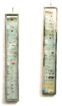 'MOVED BY THE LAND - SOIL SAMPLES (MENDOCINO AND SONOMA COUNTIES)', 2001,MIXED MEDIA, TWO PANELS 4" x 24 1/2 x 3/4"