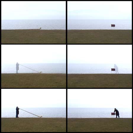 ‘SPLIT’TWO SCREEN VIDEO PROJECTION OF PERFORMANCE WITH ALPHORN & FOGHORNMARCH 13th, 2004, STÄFA, SWITZERLANDSHOWN AT 'THREE TURNS MIAMI' EXHIBITIONNOVEMBER 29th, 2021, MIAMI, UNITED STATES