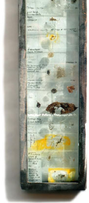 'MOVED BY THE LAND - SOIL SAMPLES (MENDOCINO AND SONOMA COUNTIES)', 2001,MIXED MEDIA, TWO PANELS 4" x 24 1/2 x 3/4"